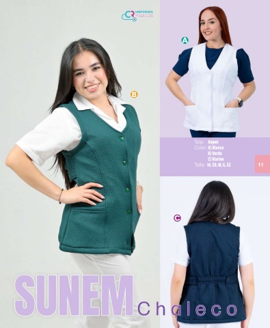 A B Tela: Aspen Color: A) Blanco B) Verde C) Marino Talla: 16, CH, M, G, EG 11 C 11