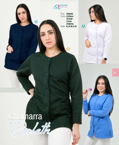Tela: Afelpada Color: A) Blanco B) Verde D C) Azul D) Marino Talla: 16, CH, M, G, EG A B 17 C 17