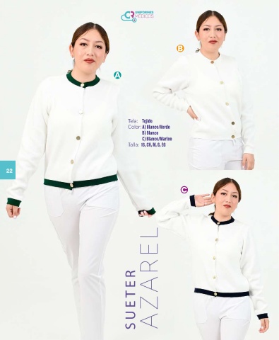 B A Tela: Tejido Color: A) Blanco/Verde B) Blanco C) Blanco/Marino Talla: 16, CH, M, G, EG 22 C 22