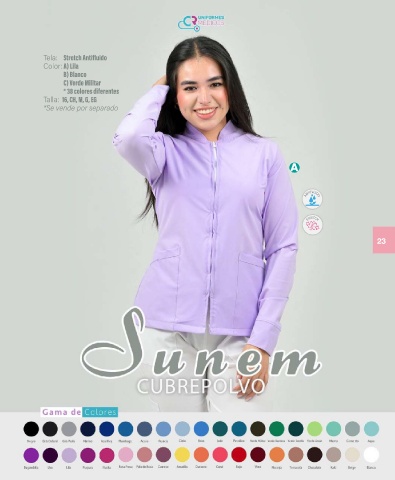 Tela: Stretch Antifluido Color: A) Lila B) Blanco C) Verde Militar * 38 colores diferentes Talla: 16, CH, M, G, EG *Se vende por separado A ANTIFLUIDO STRETCH 23 23