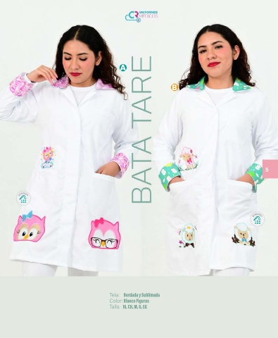 A B 5 BORDADO BORDADO Tela: Bordada y Sublimada Color: Blanco Figuras Talla: 16, CH, M, G, EG 5