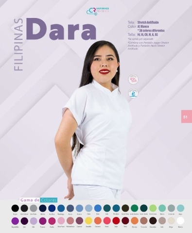 Tela: Stretch Antifluido Color: A) Blanco * 38 colores diferentes Talla: 14, 16, CH, M, G, EG *Se vende por separado *Combina con Pantalón Jogger Stretch Antifluido y Pantalón Recto Stretch Antifluido STRETCH ANTIFLUIDO 51 51